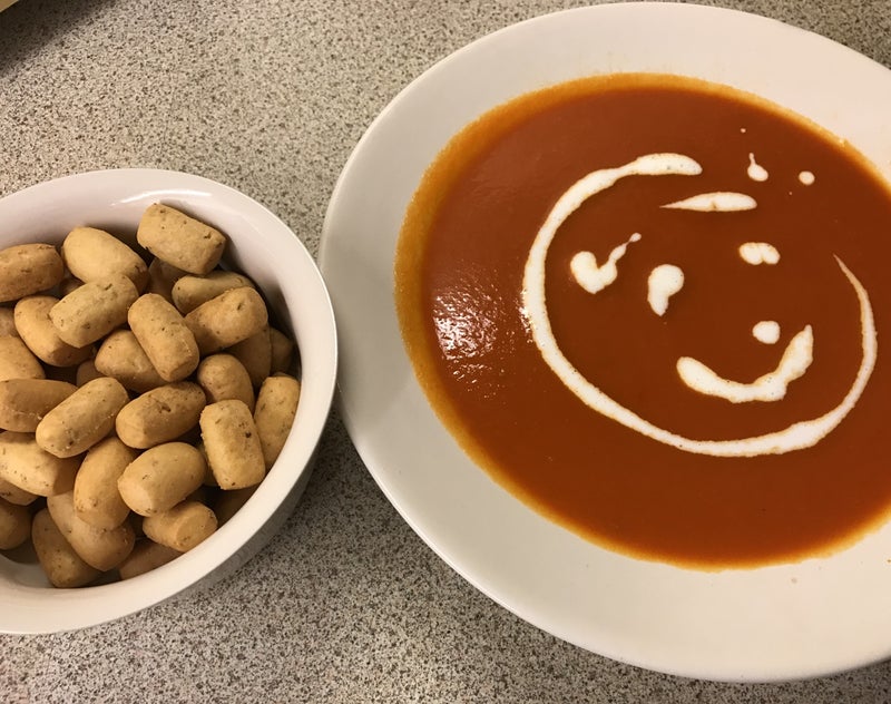 Als ik van te voren weet dat ik weinig tijd heb om te lunchen maak ik me er heel makkelijk vanaf. Dan zorg ik er bijvoorbeeld voor dat ik de avond ervoor een soepje uit de diepvries zet en eet ik er een zakje grissini oregano soepstengeltjes bij. Of ik zorg dat ik een salade heb, waar ik de snackbolletjes in kan doen.